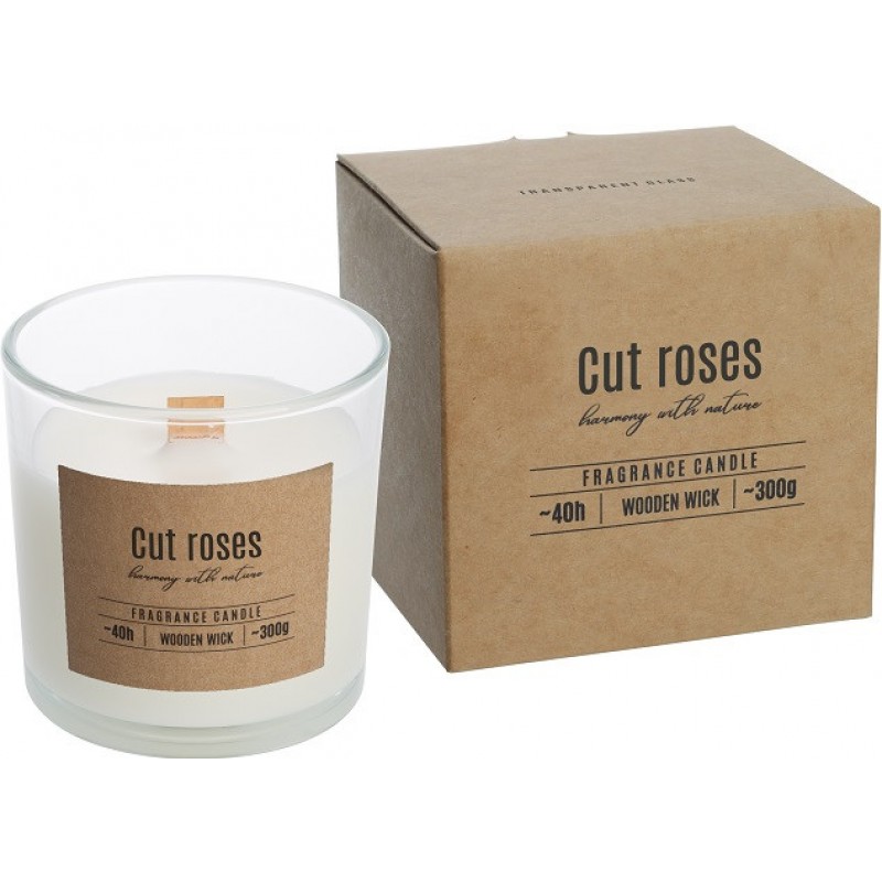 Ароматическая свеча в стекле с деревянным фитилем и ароматом роз позволит вам почувствовать себя ближе к природе в интерьере вашего дома.