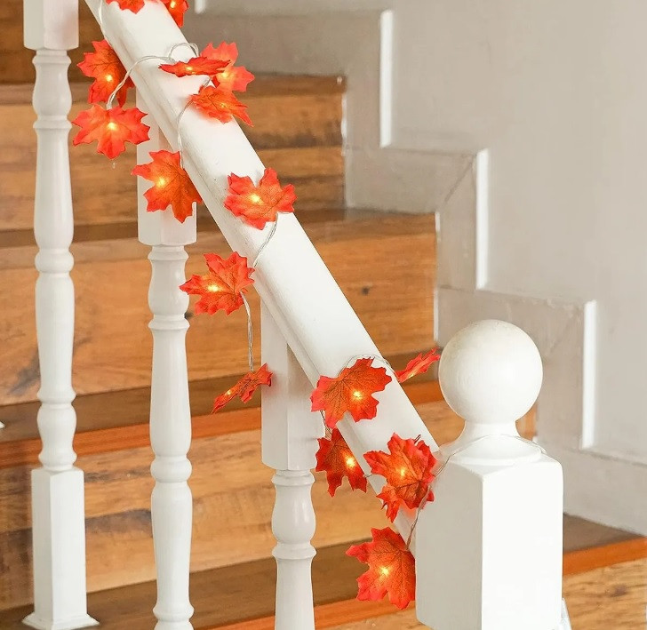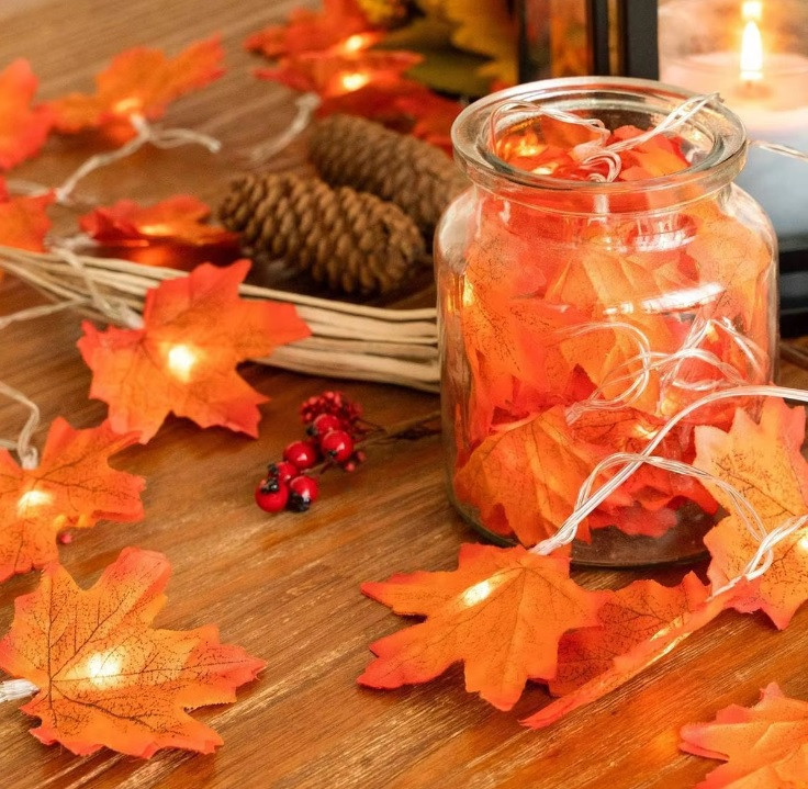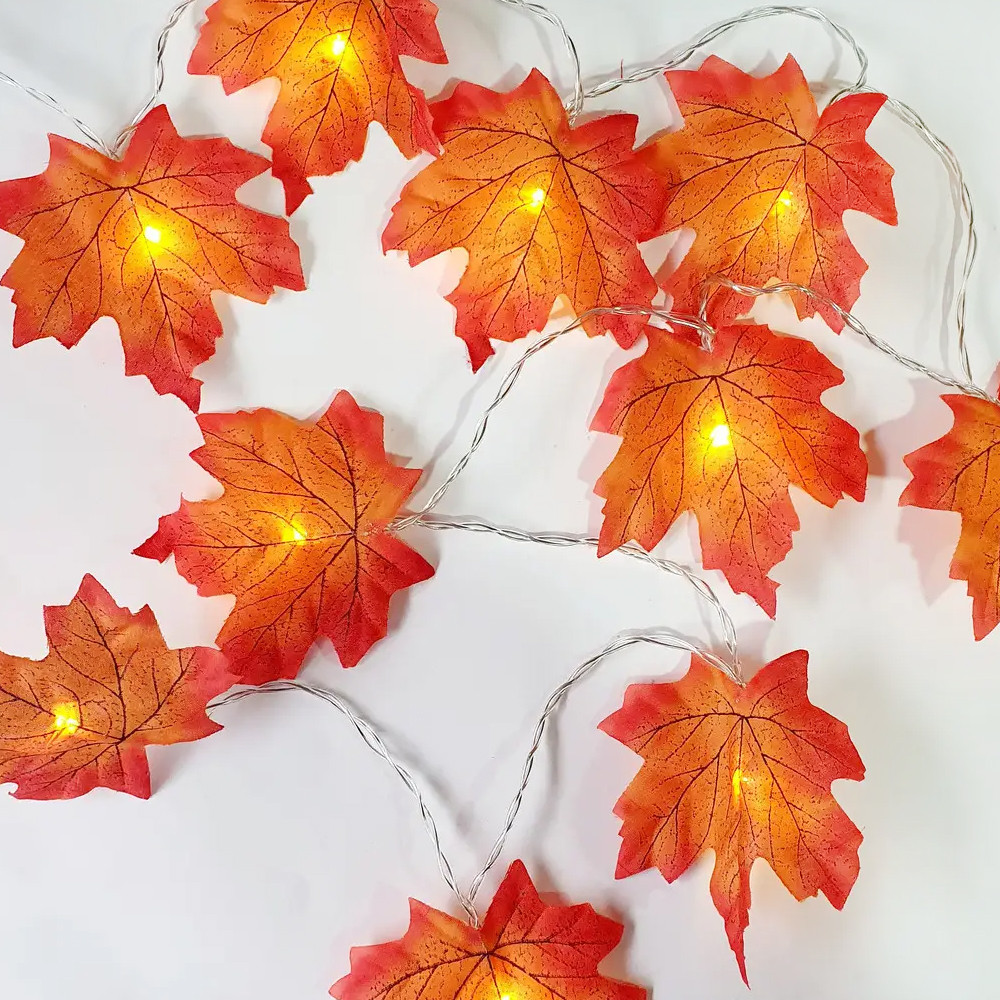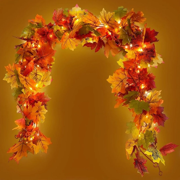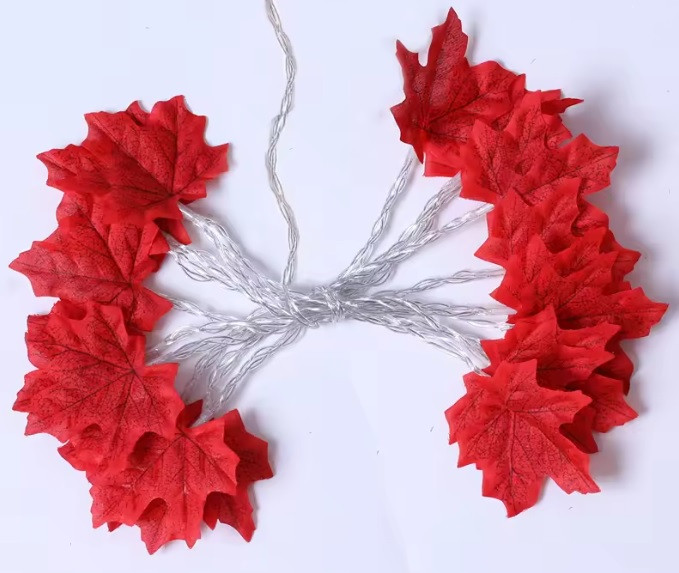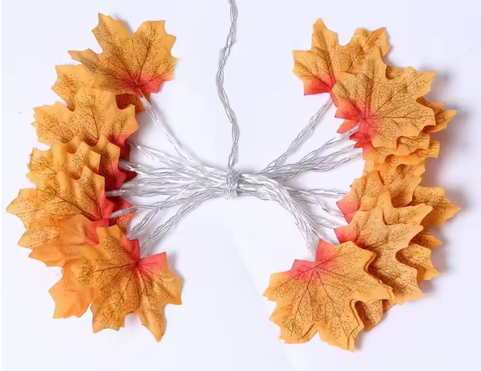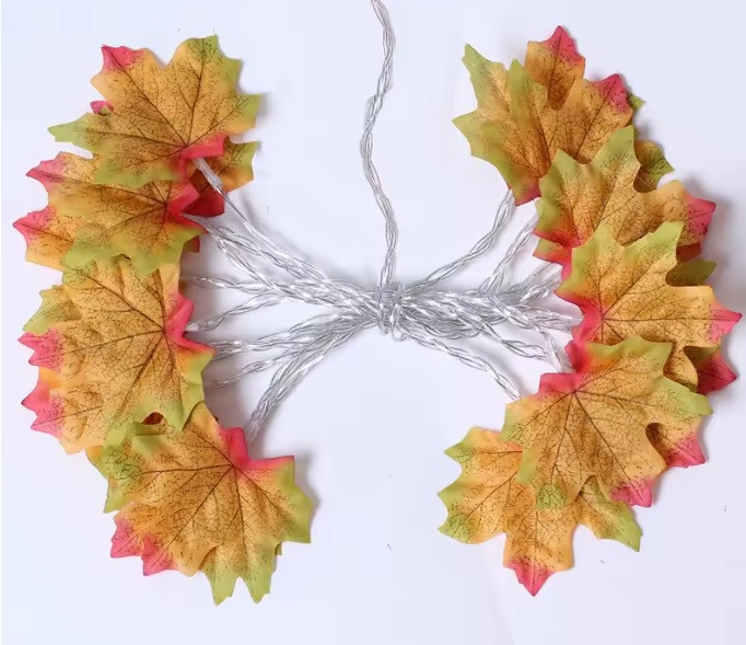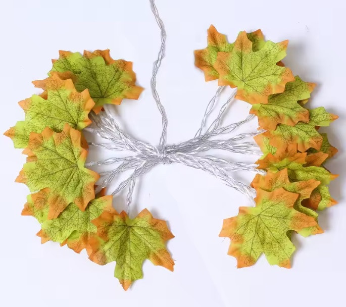 Искусственный осенний кленовый лист c led подсветкой на мини батарейках 2м