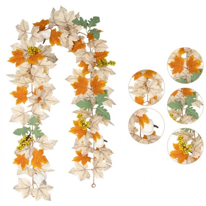 гирлянды с кленовым листом из высококачественных искусственных материалов. Идеально подходит для создания уютной атмосферы дома или на празднике. Может использоваться для оформления стен, дверей, праздничных композиций, фотозон, сцен и витрин. Станет стильным акцентом в сезонном декоре как для дома, так и коммерческих пространств.