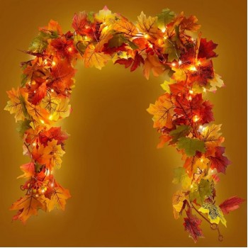 Искусственный осенний кленовый лист c led подсветкой на мини батарейках 2м