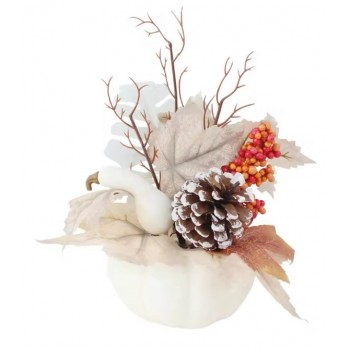 Осенний букетик с искусственными кленовыми листьями, шишкой, рябиной 13 см