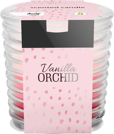 Аромасвеча трехцветная в фактурном стекле Bispol ваниль-орхидея 8 см (snw80-184)