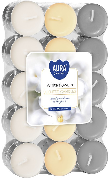 Свеча чайная ароматизированная белые цветы Bispol 1.5 см 30 шт (p15-30-179)