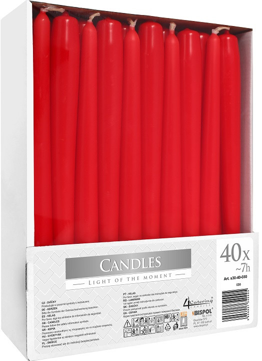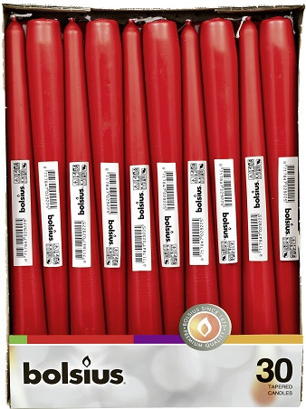 Свеча красная коническая Bolsius 24.5 см 30 шт (8717847047571)