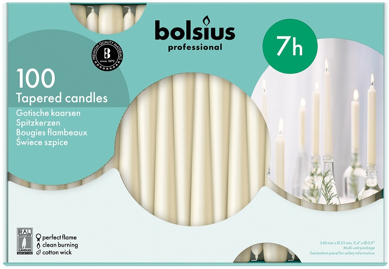 Свеча белая коническая Bolsius Professional 24.5 см 100 шт (s30-100-090Б)