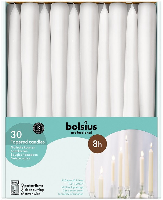 Свеча белая коническая Bolsius 24.5 см 30 шт (8717847029218)
