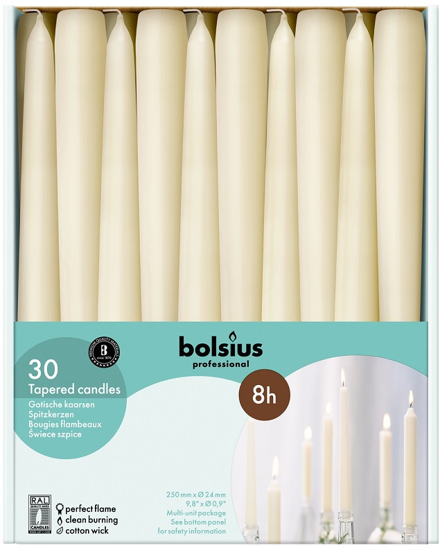 Свеча кремовая коническая Bolsius Professional 8 часов 24.5 см 30 шт (8717847029225)